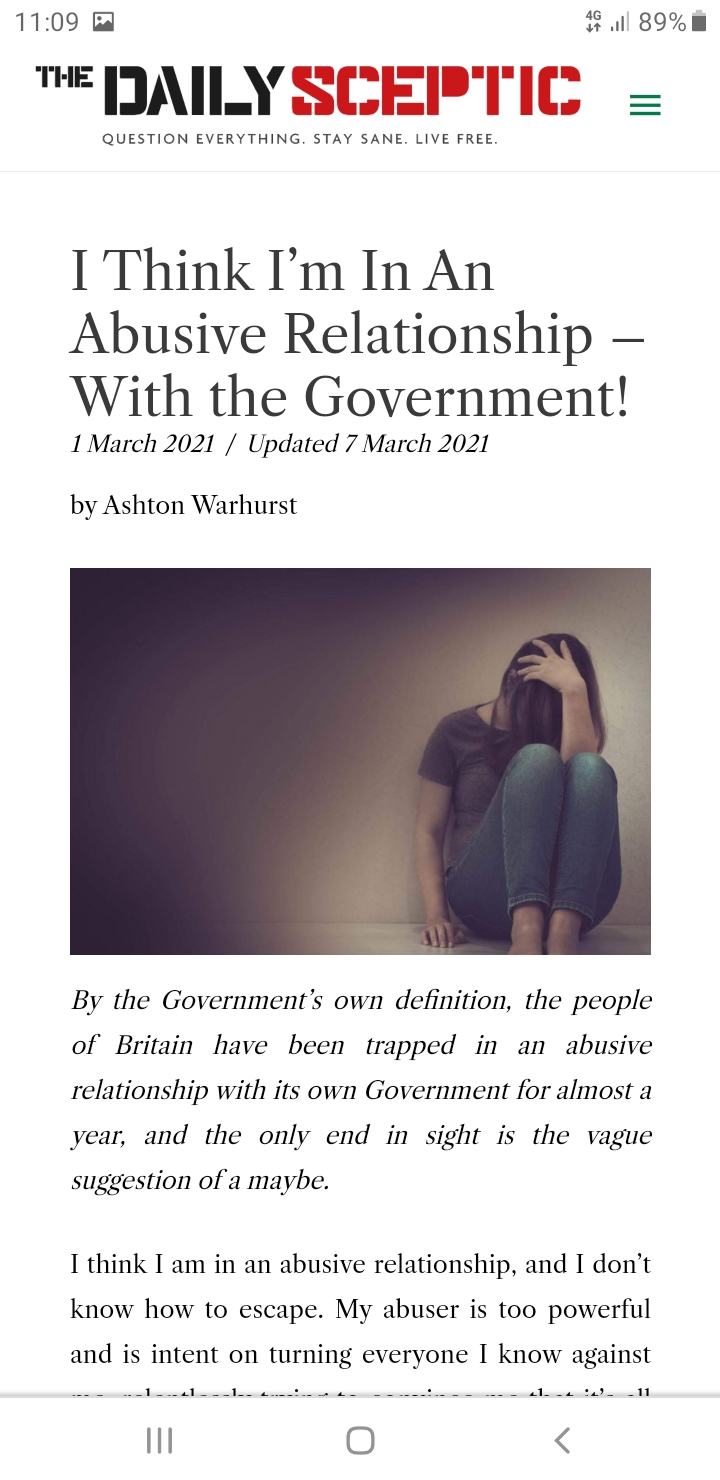 7 minutes well worth watching in full and Neil looks so much healthier than on his usual Zoom appearances. Neil says “I am living in an abusive relationship with the government” which was a headline article here at lockdownsceptics March 1st of this year (see attached), the phrase being coined the previous summer 2020 by a left leaning lady poster on this very site. The case against vaccine passports is stronger than Neil suggests. Since we know that the ‘vaccine’ prevents neither infection nor transmission but might suppress symptoms (ie you don’t think you are ill when actually you are) the fully vaccinated are likely to become super spreaders as was predicted here at LS last year. A more general, less spcific, probably the unmasked, fear of superspreaders was pumped out by the MSM for a month or so at some point before moving onto the next horror fest. Meanwhile look forward to a huge spike in cases around Glasgow when 32,000, as Neil points out, untested, unquarantined, unmasked Green Groupies descend for COPwotever. Hotel staff spreading cases to their families and friends, similarly restaurant workers and taxi drivers but also sharing with other clients. Thinking that their masks will… Read more »