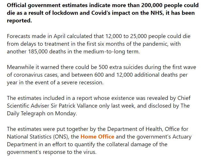 Well, the government did expect up to 200,000 people to die from the side-effects of lockdown, in a not very much publicised report…