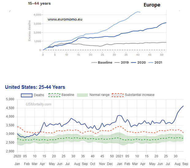 Seems excess mortality in young adults across both the USA and Europe are rocketing?