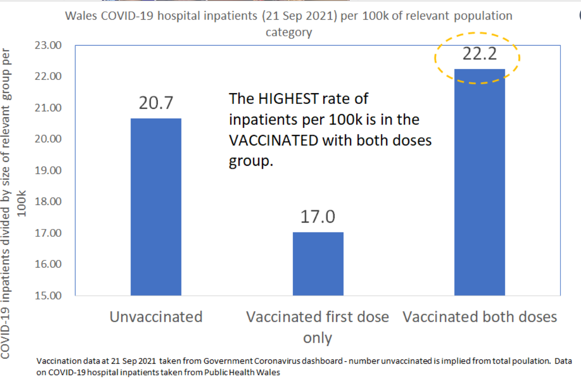 The number of COVID-19 inpatients in Wales (21 Sep 21) per 100k is HIGHEST for the FULLY VACCINATED: