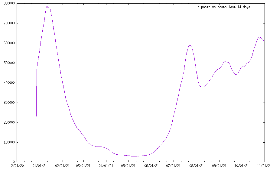 However, hospitalisations and deaths remain well below the levels seen earlier this year – in part due to the vaccine rollout which has seen 45.7 million people fully vaccinated.