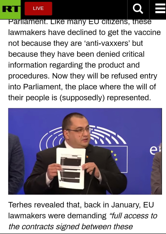 - “The E.U. is not revealing the details of its contracts with vaccine makers. Why?” – “As some Europeans continue to resist mandatory vaccine measures, a group of parliamentarians have upbraided the Commission for allowing pharmaceutical companies to ‘run roughshod over democracy’,” writes Robert Bridge in RT.