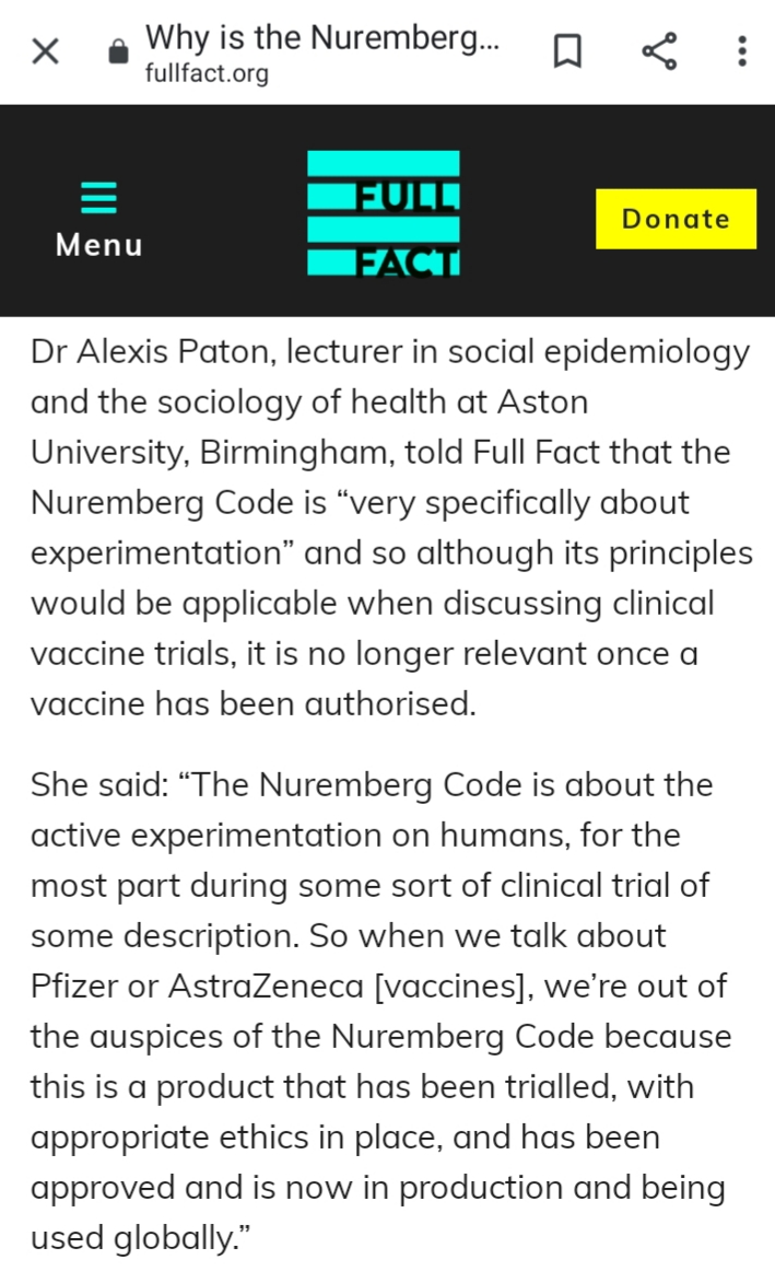 Meanwhile ‘fact checkers’ get away with this (4th listing when searching Google for Nuremberg Code).