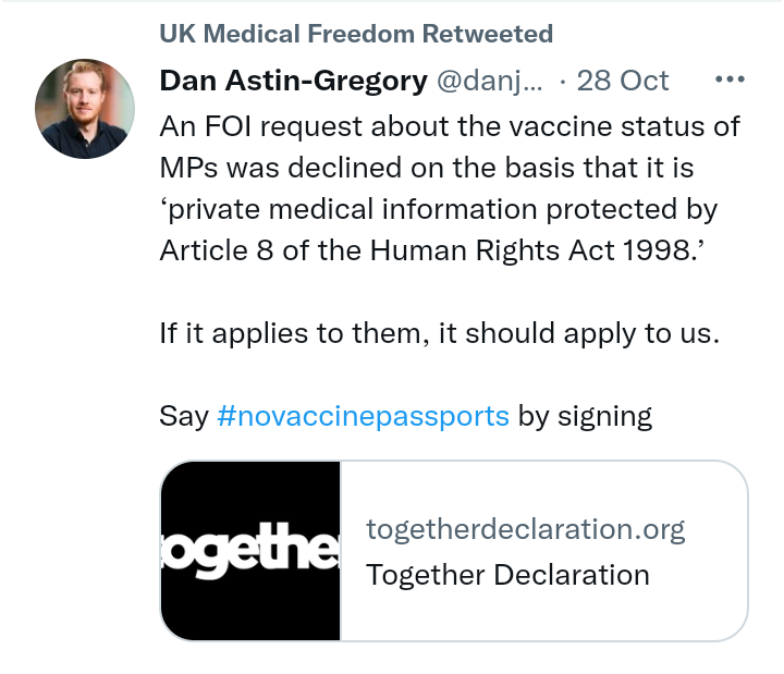 Do you have a link to the original person who made the FOI request please? Just want to do due diligence and confirm this is exactly as it seems because, assuming it’s kosher, it strikes me as being very important information for anyone (like me) who hasn’t been jabbed and, additionally, for those that have but believe it should be a matter of personal choice and not a a result of state coercion. Thanks in advance!