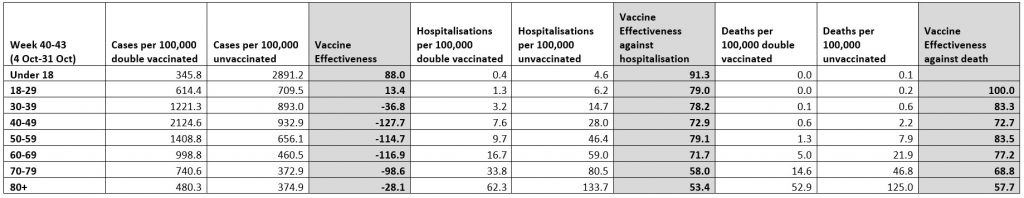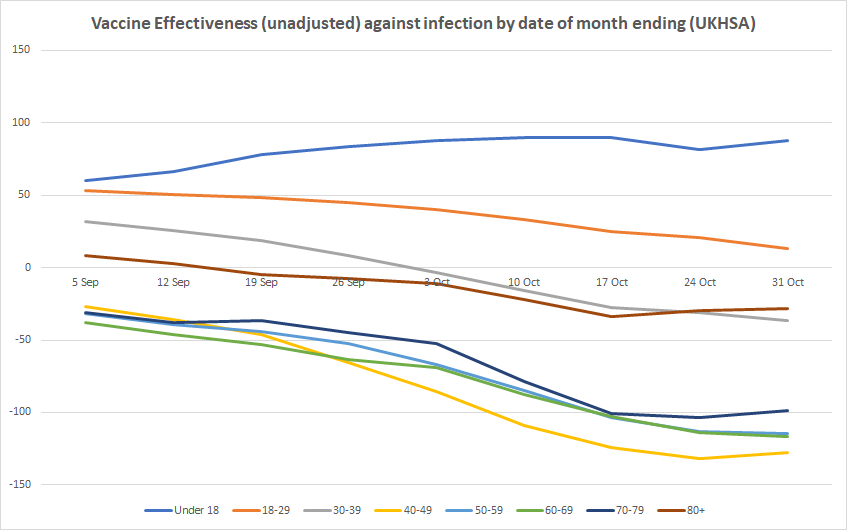 The under 18 age group is misleading as there are so few double jabbed. When you include single jabbed there’s actually negative efficacy there also according to my calculations.