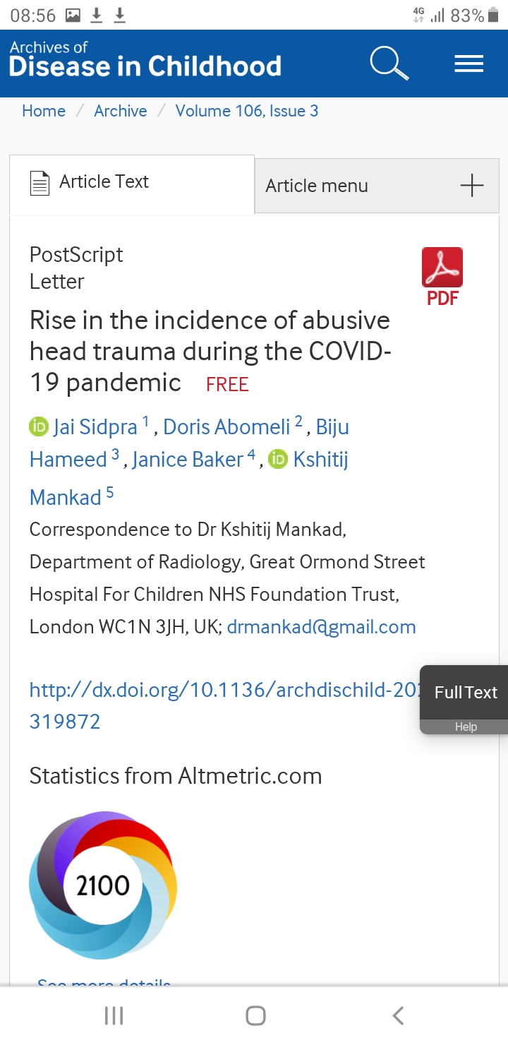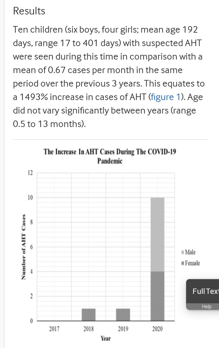 Early Summer last year there were items on the Radio (dunno about print MSM) about a study from Great Ormond Street Hospital showing 14 or 15 times more incidence of child head trauma in the first month of lockdown. Details were few but there was speculation that this resulted from being cooped up in small flats with unstable household members.