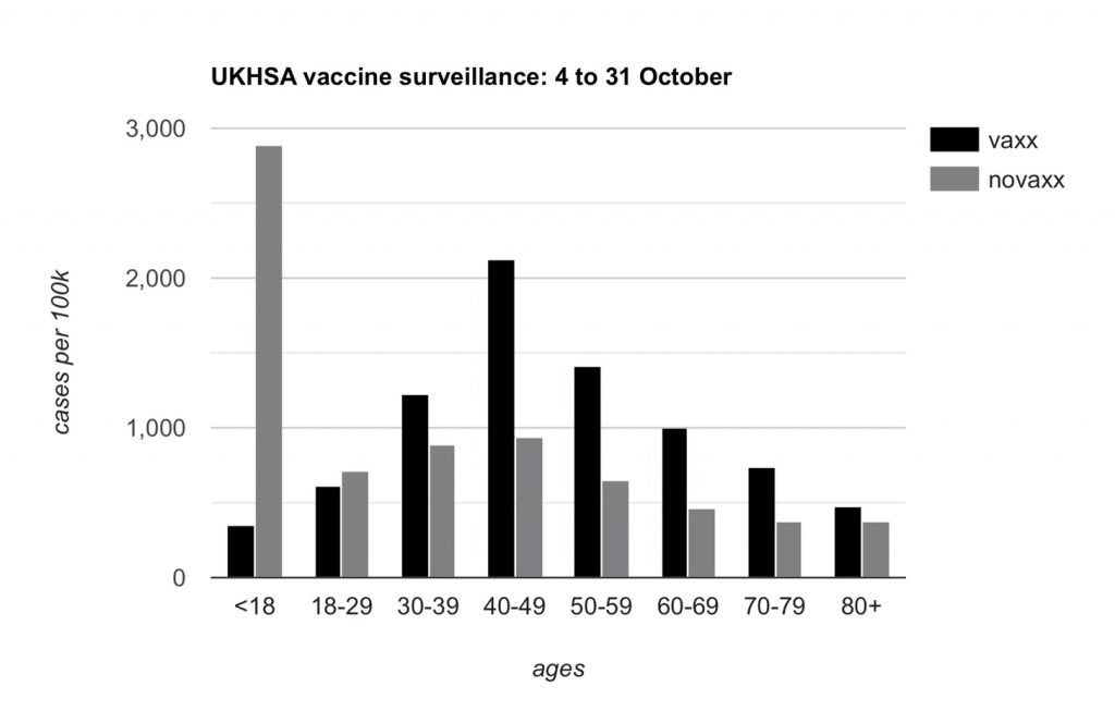 Thank you for the constructive meeting on Thursday October 28th to discuss the UK Health Security Agency’s (UKHSA) COVID-19 vaccine surveillance statistics. We focused on the risk that the data presented on rates of positive cases for those who are vaccinated and those who are unvaccinated have the potential to mislead – and indeed we noted that these data have been used to argue that vaccines are ineffective.