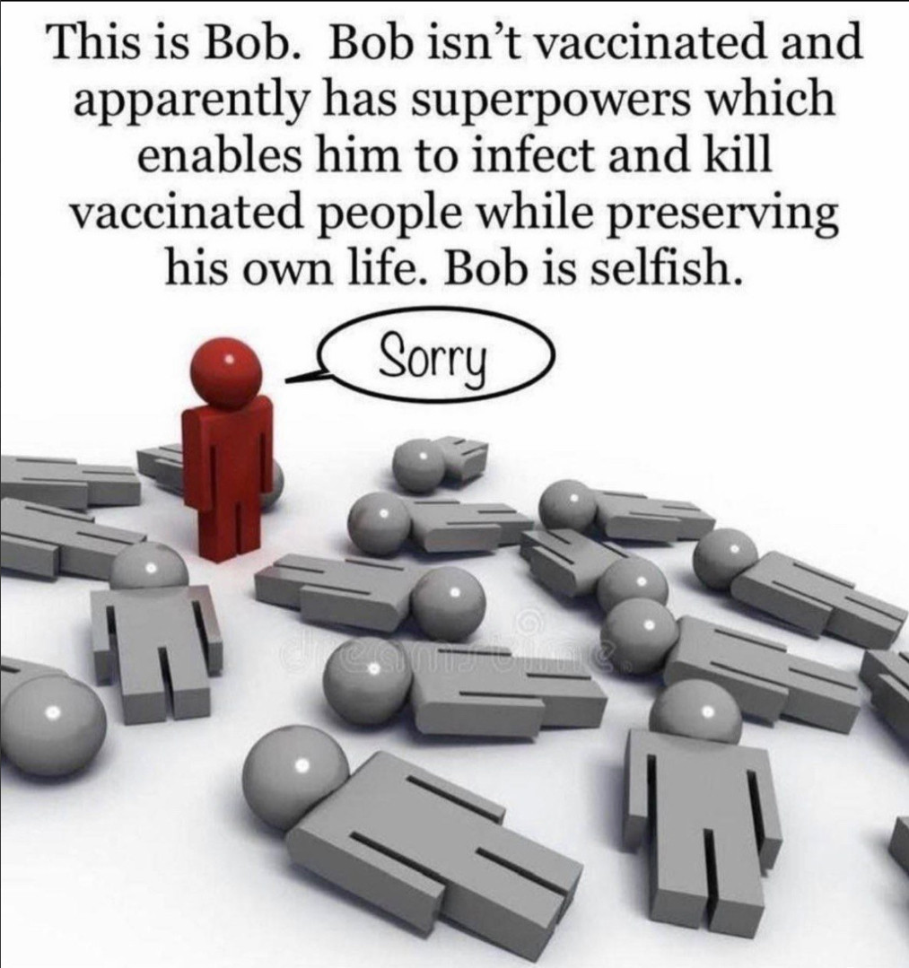 No wait a minute anyone who refuses to have a vaccine that doesnt stop infection or transmission even after THREE doses deserves everything they get surely ???? Im for LEMSIP myself