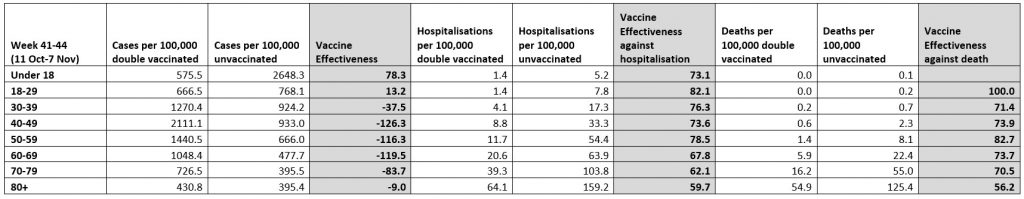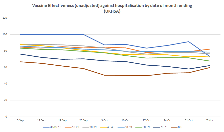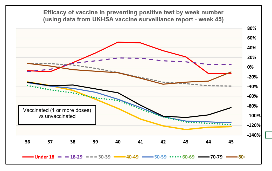 Just looking at the tables on the UKHSA vaccine week 45 surveillance study: