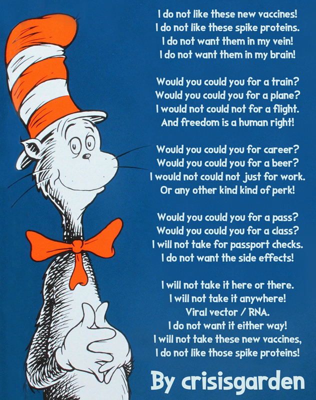 Also of course the unnamed character does indeed end up trying and liking green eggs and ham, which in the case of spike protein is unlikely.