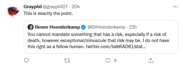 Yes it’s probably easier (but he is giving up something he probably loved and has worked all his life for) though I think others have interpreted this as you diminishing his actions in some way. Leaving that debate aside, I think the point to focus on is that we need high profile people to speak out and normalise the non-vaxxed position. The more that do, the harder it is for the position to be marginalised.