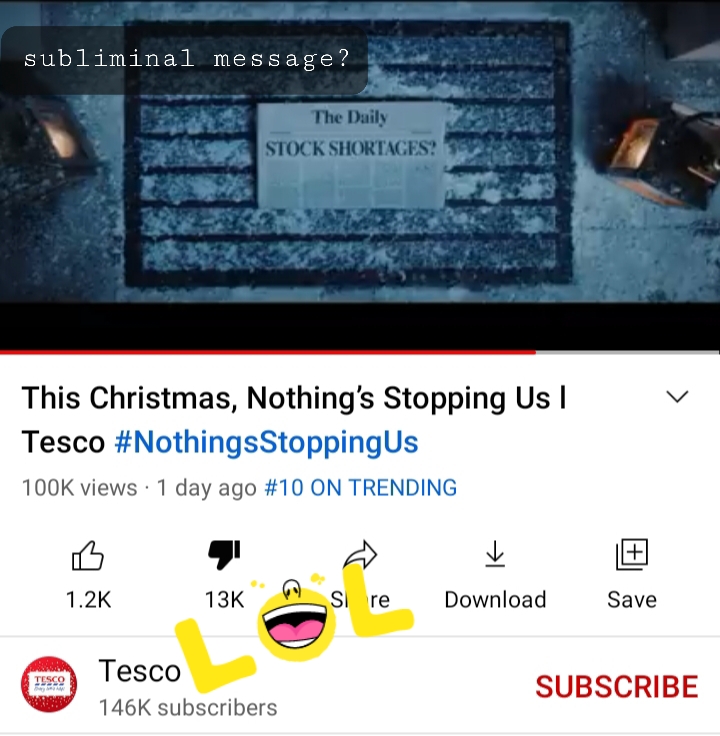 Ugh. If you bother to read the nauseating little piece by the Express about the Tesco advert, don’t bother reading the jabby-fanatical comments…all of which strangely have a similar ring to them! A bit like bots or our mates at 77th, or they are just narrative-swallowing normies. The viciousness is pretty fierce but we’re the dangerous ones apparently. They said they WILL be shopping in Tesco…so even more reason to boycott them, I suppose.
