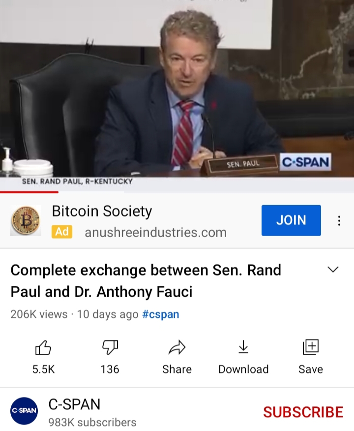 This is the moment (1m.20s ) when Senator Rand Paul accuses fauci of working with the team in Wuhan whose Gain Of Function experimentation could have produced a covid virus with 15-50% human mortality.