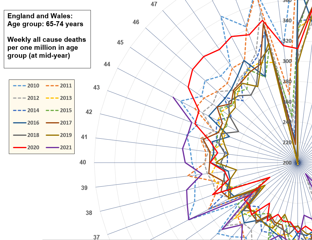 The weekly age banded data only goes back to 2010. But the monthly age standardised mortality (ASM) goes back to 2001. You can just about see from that (see attached for England) that in terms of ASM, which typically reflects mortality in the older groups, because death numbers are massively higher in those age groups, has been on an improving trend since 2001 until 2019. So what I can only put down to lack of access to healthcare and vaccine adverse reactions (numbers say its not deaths from covid) has pushed us back to about 2008-2010 mortality levels it seems if we judge by current mortality levels. One way to look at it is all the harm from the damaging pandemic responses and dangerous experimental vaccines only pushes us back to 2008 mortality. Another way to look at it is as significant unnecessary death caused by the pandemic response and potentially the vaccines. It may be unreasonable to expect the mortality improvements to have continued, but it’s another thing for mortality to regress to 2008-2010 levels. So I favour the latter viewpoint of unnecessary death albeit we need to put it in context. What are your thoughts? How do you… Read more »
