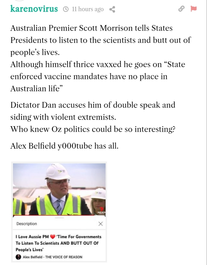 Alex Belfield is a UK sceptic video blogger who often reports on covid/lockdown/vaccines. While pro vaccine for those that want it he is also fiercely free choice for those that don’t.