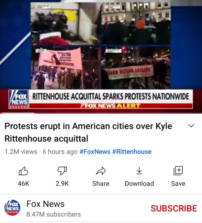 Protests erupt across American Cities after Rittenhouse acquittal. Fox News. No surprises there