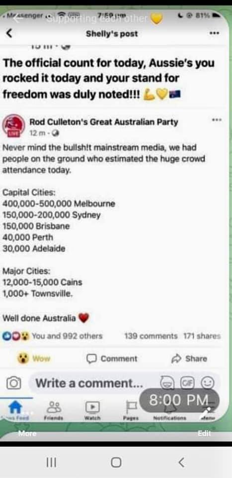 The scene in Perth yesterday. I was at the rallies in August and September and the numbers just keep on growing.