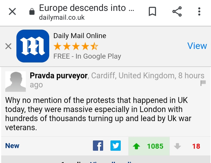 So,the Mail is lying – there were massive peaceful protests across the continent including the UK and a small amount of violence in the Netherlands. Europe is “descending into tyranny” supported by the Mail.