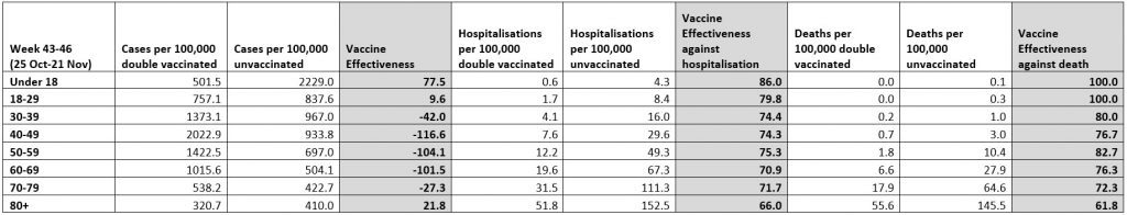 Thank you for a clear presentation of the data. For the under 50 ages Covid remains a very low morbidity illness, vax or un-vaxed. For the 50+, especially 70+, it remains a net positive, which is of course where the whole vaccine program was supposed to be targeted. Now the key is to monitor 3rd dose impact on 50+ and see when it begins to decline.