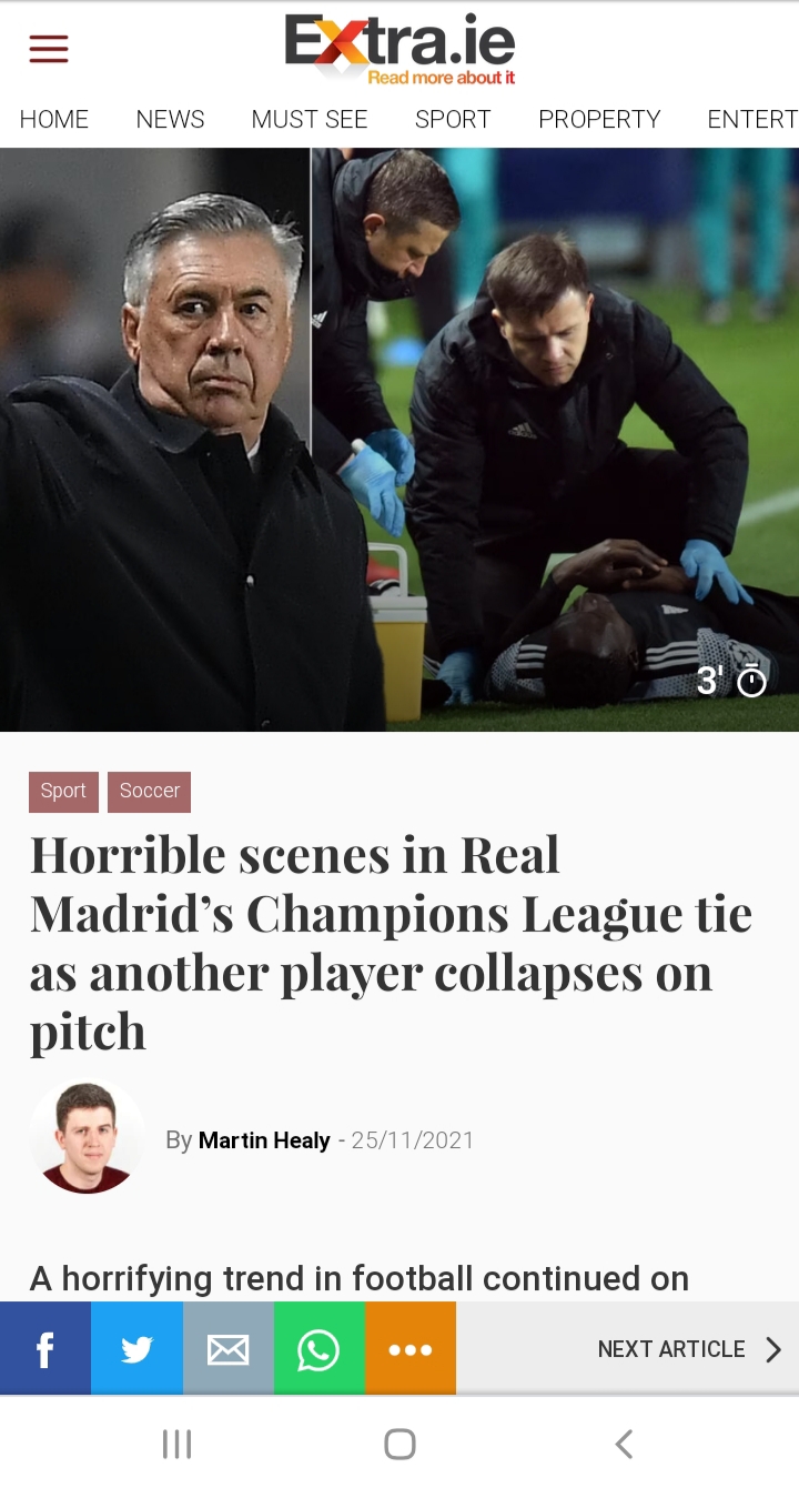 There was a third unexplained collapse during Real Madrids Champions League (?) game against Sherif Tiraspol in which the player collapses, for no apparent reason, clutching his heart.