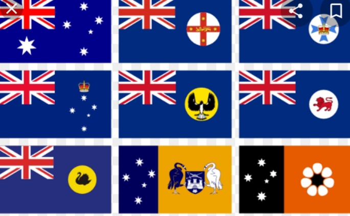 The plethora of flags is confusing, below are the Official flags of Australias constituent States (unofficial Aboriginal and republican ones are available) the one in the first photo with the Union Flag quartered on a red ground with the Southern Cross constellation and Commonwealth Star being the Australian Ensign, presumably the Merchant Marine