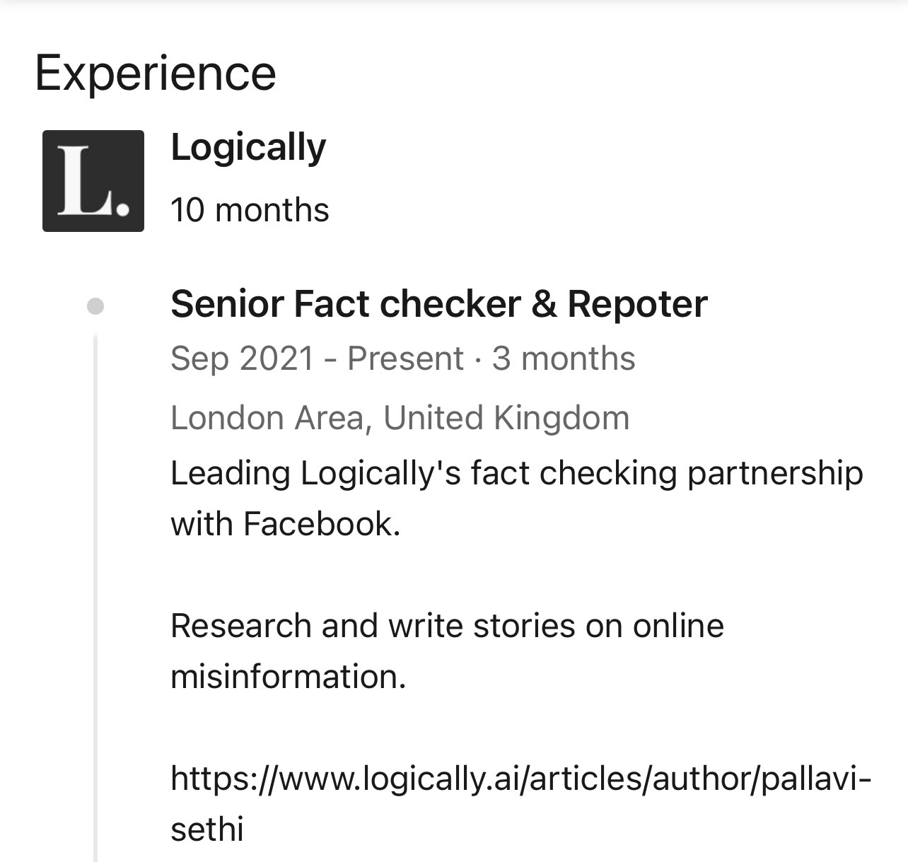 Pallavi writes that “the COVID-19 pandemic has given rise to a lot of potentially dangerous misinformation”, and, libellously, refers to the Daily Sceptic as “a website that often propagates COVID-19 misinformation”. Hmm, unlike Logically, which publishes ‘fact checks’ that attack straw men and cite discredited reports.