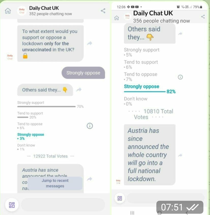 I think it’s fair enough to criticize the Chat platform but it’s not the source of the claims being made about support for mandates in the population. Chat is basically a form of entertainment as far as I can tell – those claims about what the public truly believe come from normal polling techniques like those used for elections.