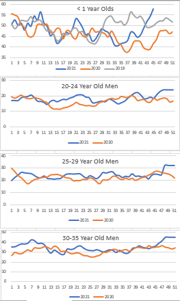 The “< 1 Year Old” graph is a crude proxy for stillbirths, because it also includes infants who died before they reached the age of 12 months. I have sent a Freedom of Information (FOI) request through to the ONS to get the data on stillbirths, because they only provide data up until 2019, and not the last two years. They’ll come back to me in the next couple of weeks, hopefully with the raw stillbirths data.