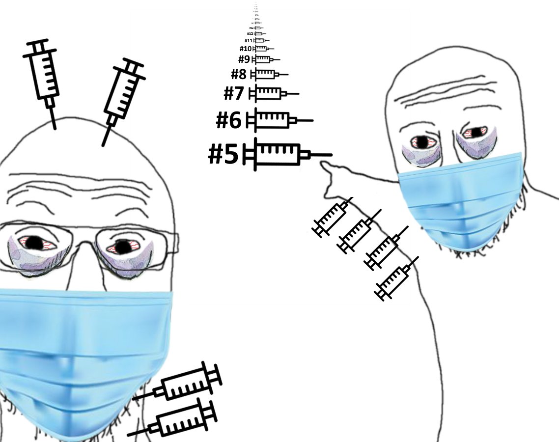 Soon you won’t be able to wait for a booster every 90 days. The road to transhumanism is paved with compliance and cowardice. You’re looking forward to endless experimental gene therapy procedures, which have the biggest public health failure in the history of mankind. An injection that went from 95% effective to 0.84% effective in absolute risk reduction terms since the rollout started. An injection that has killed over 30,000 people in Europe, maimed over 1.2 million in the UK. For a virus with a survival rate of 99.98%….