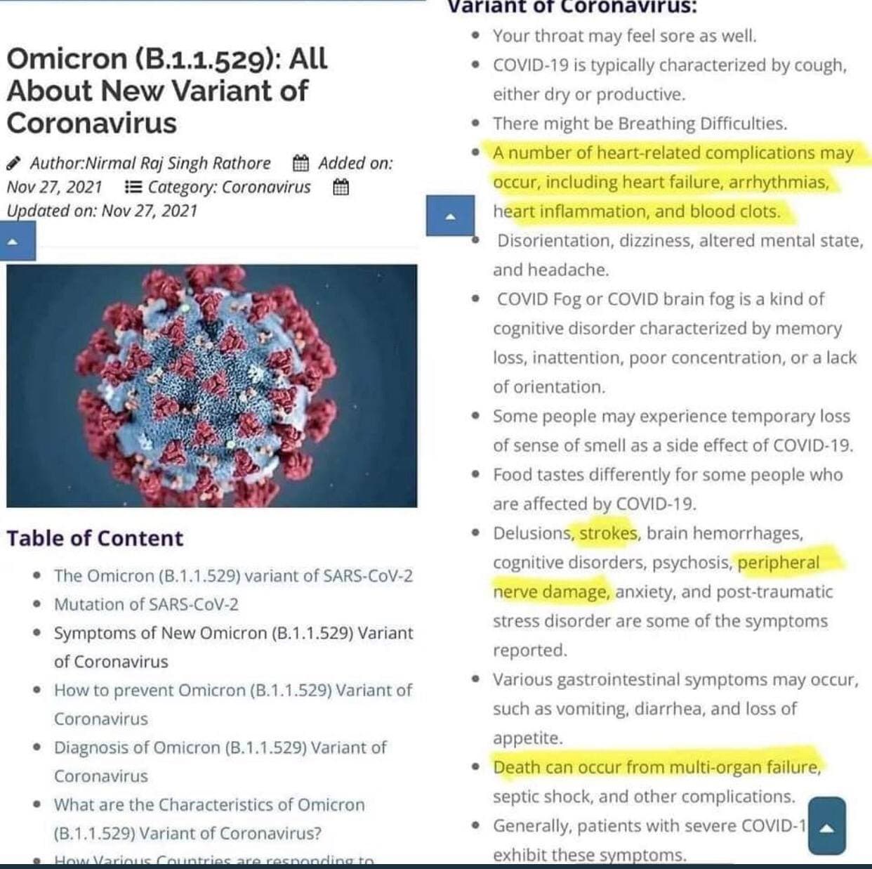 Tell me how, within hours of this supposed new variant being found, they can publish a whole list of short, medium and long term symptoms? And isnt it strange that many of these symptoms mirror the exact same severe side effects of taking the gene therapy drug? A cynic would accuse them of lining up Moronic to be the fall guy for gene therapy induced deaths and injuries.