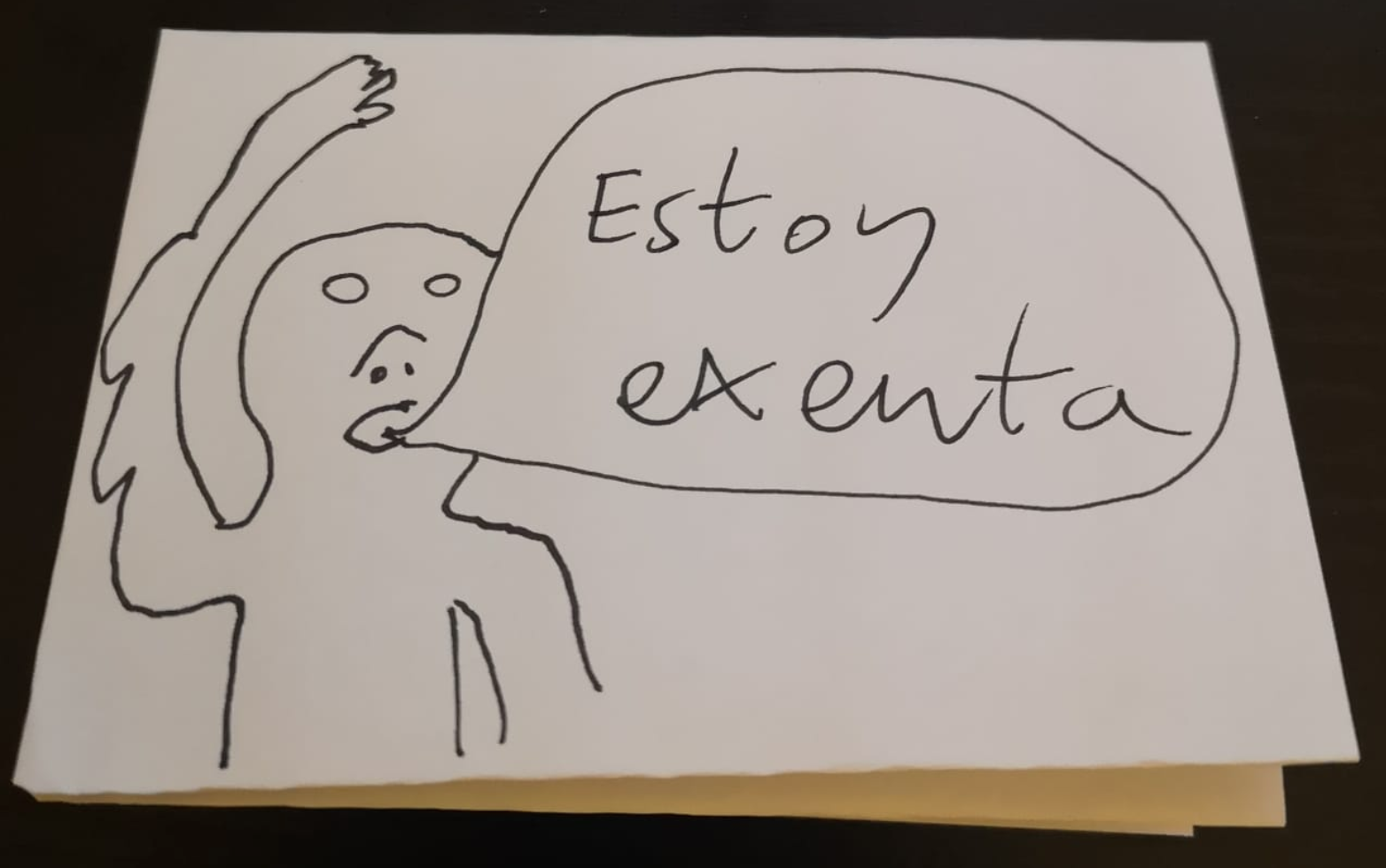 I made a thing called an “Exemption Spaniard” which is a folded piece of paper with a very badly drawn line drawing of a Spaniard flamenco dancing with the Spanish words for “I’m Exempt” in a speech bubble. When asked in Waitrose the other day where my mask was I merely flashed this at the security guy and he said obsequiously “Oh you’re exempt, that’s fine sir!”