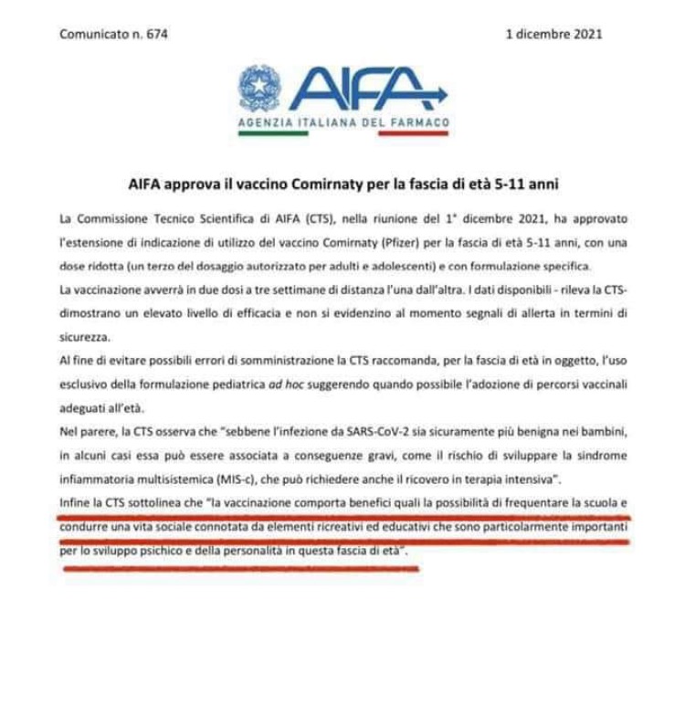 1st Dec: Italy approves vax for kids aged 5-11, just in time for Natale(xmas); I suppose that’s OK under rules of informed consent?