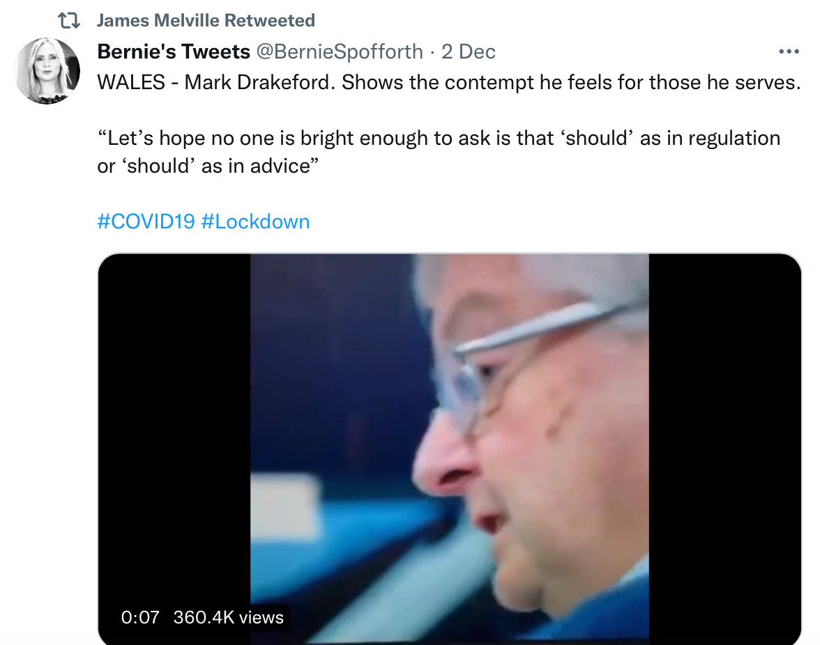‘WALES – Mark Drakeford. Shows the contempt he feels for those he serves.’