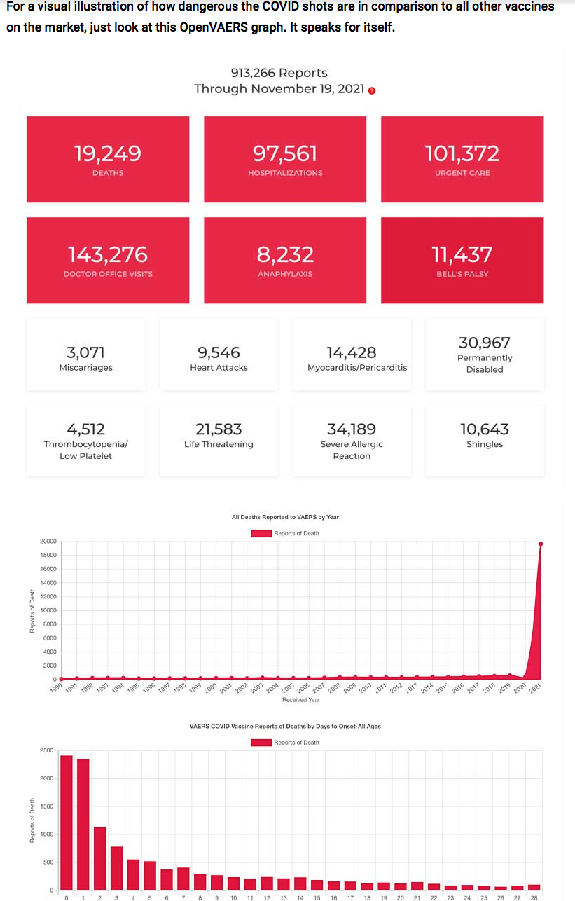 The Pfizer study data looks particularly menacing in terms of adverse events and deaths. One must ask how on Earth such a dangerous experimental biological was given EUA status. The ongoing carnage of people of all ages must be reported responsibly in msm. We are waiting. If you have not read Steve Kirsch’s or Robert Kennedy’s, Dr. Mercola’s daily newsletters, I urge you to take a look at the carnage going on. Del Bigtree on every Thursday evening 7pm Uk time. A round up of the week’s darts and other covid info, including legislation around the world.