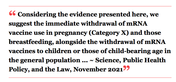 Miscarriages and Other Tragic Side Effects of the mRNA Shots Ignored Safety Signal: Post-Injection MiscarriagesWhile we’re starting to hear more about the heart damage and strokes the COVID shots cause, a troubling effect that isn’t getting the attention it deserves is miscarriage. As of November 19, 2021, 3,071 miscarriages had been reported to the U.S. Vaccine Adverse Events Reporting System (VAERS). There were also:618,024 cases of menstrual disorders6,654 cases of vaginal/uterine hemorrhage1,216 cases of testicular pain or swelling395 cases of erectile dysfunction All of these effects point to the shots having an adverse impact on human reproductive health. A recent paper7 in Science, Public Health Policy, and the Law addresses reproductive concerns, noting that while “the use of mRNA vaccines in pregnancy is now generally considered safe … the influential CDC-sponsored article by Shimabukuro et. al.8 (2021) used to support this idea, on closer inspection, provides little assurance …”In particular, getting the COVID shot during the first 20 weeks of pregnancy is extremely risky — the risk of miscarriage is anywhere between 82% and 91% — but Shimabukuro et. al. hid this stunning finding in their paper.9 Here’s how they did it.How Shimabukuro et. al. Hid Massive Safety SignalAccording to Shimabukuro et. al.,10 the miscarriage… Read more »