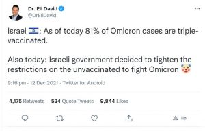 Given the news from Israel (see image below) that 81% of Omicron patients are ‘triple-jabbed’, anyone who believes any of this shit that Johnson and Javid are spouting is a fucking idiot!