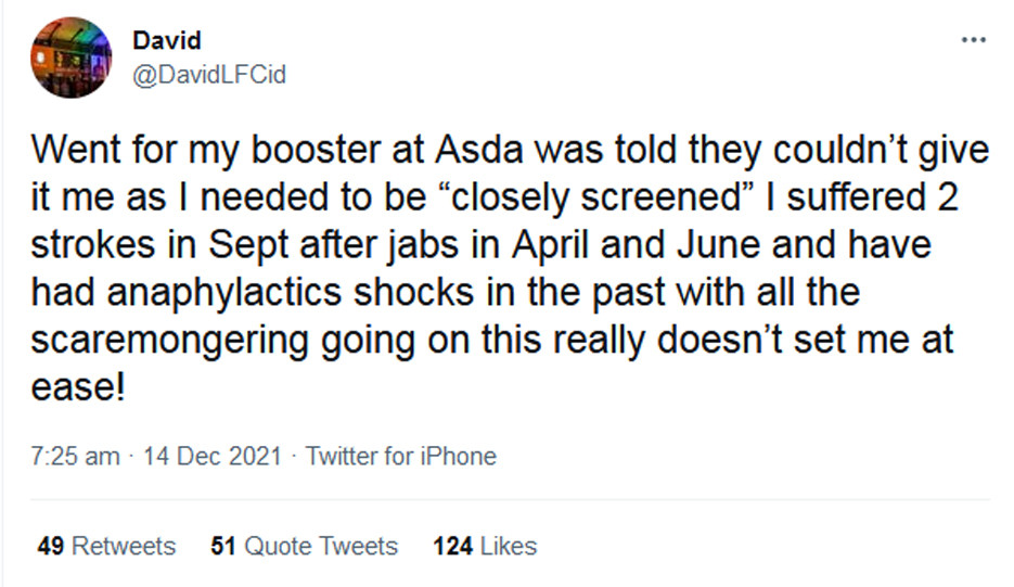 This one single death, the nature of which the government is not prepared to disclose, is the sole justification, flying in the face of ALL the evidence amassed so far that Omicron, while transmissible is a mild illness, FOR ALL OF THE GOVERNMENT SPONSORED SCARE MONGERING ON THE NEWS being used to push people to queue for booster jabs which they don’t need in order to bring in vaccine passports