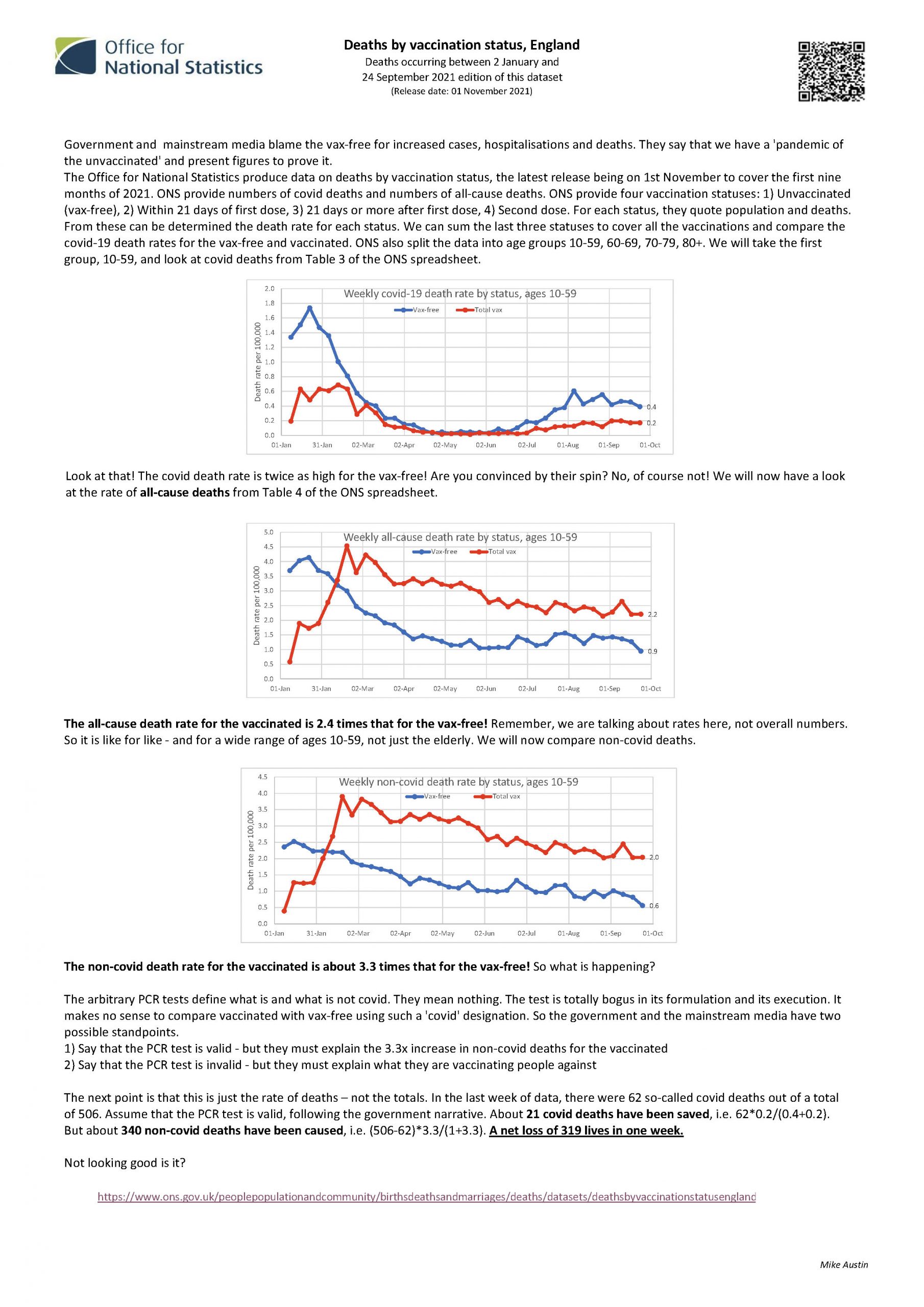 ONS data suggests jabbed people currently die from covid at half the rate of vax-free people. Sounds good. But non-covid deaths for jabbed people run at over three times the rate! Furthermore, as these deaths are far more numerous than covid-19 deaths, the net results on mortality is alarming.