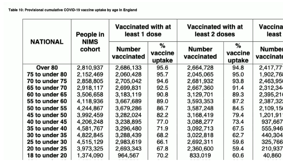 On a much more cheerful note, for us the refuseniks, government figures show total numbers with NO jab.