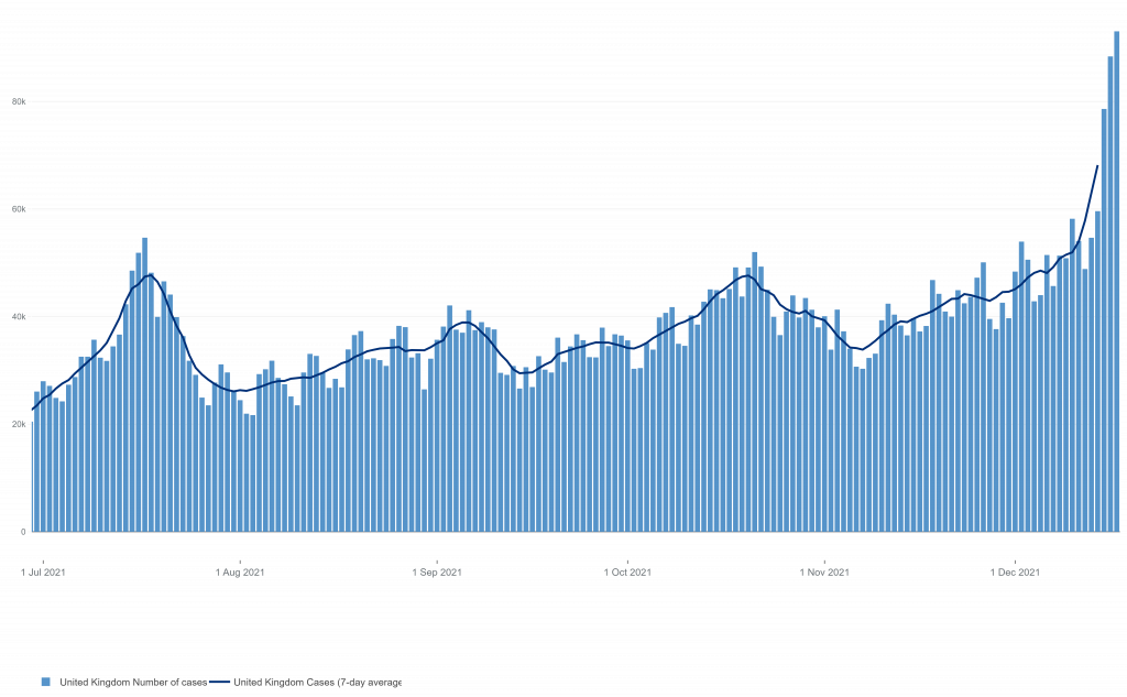 We would normally expect a spike in winter viral illness at this point in December, so there is nothing particularly unusual about it. In this regard, it’s worth noting that the Covid deaths trend for the U.K. is currently very similar to normal winter flu deaths at this time of year.