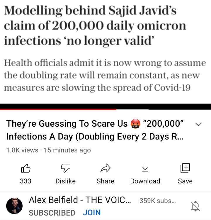 Revalation. Really Fraser Nelson? Can’t read the article because paywall but let me guess. He gets a clue as to why the latest SAGE models predicteding “Omnicon spread about to overwhelm NHS unless everyone is locked indoors for six weeks” has already been shown to be complete bollocks.