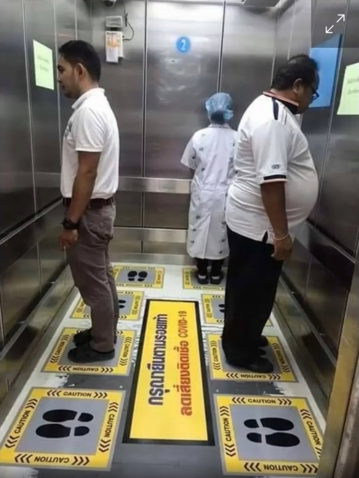 The premise is sound but the body positioning is incorrect. By facing outwards, the virus particles will strike the metal walls and ricochet around inside the lift, like bullets. This needs tweaking.