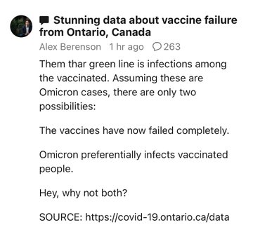 It is true then that the vaccines don’t work. Did you notice the sharp divergence of the trend lines from around 14 December for the vaxxed and the unvaxxed. What’s going on there?