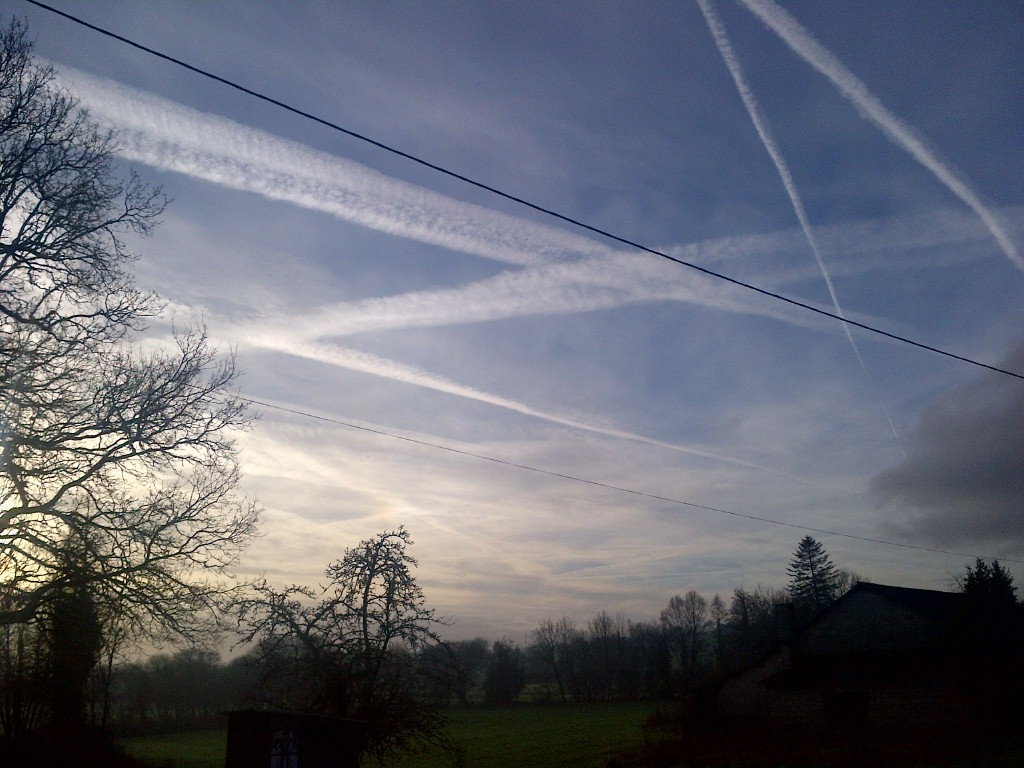 Its a pity the people putting out the Climate Crisis or the Climate Emergency propaganda don’t look up in the sky every now and again. Below is a photo of sometimes daily occurrence above my house in France, and having a relative who’s a highly trained jet engine technician I know for sure that’s not condensation trails up there.. Absolutely disgusting..