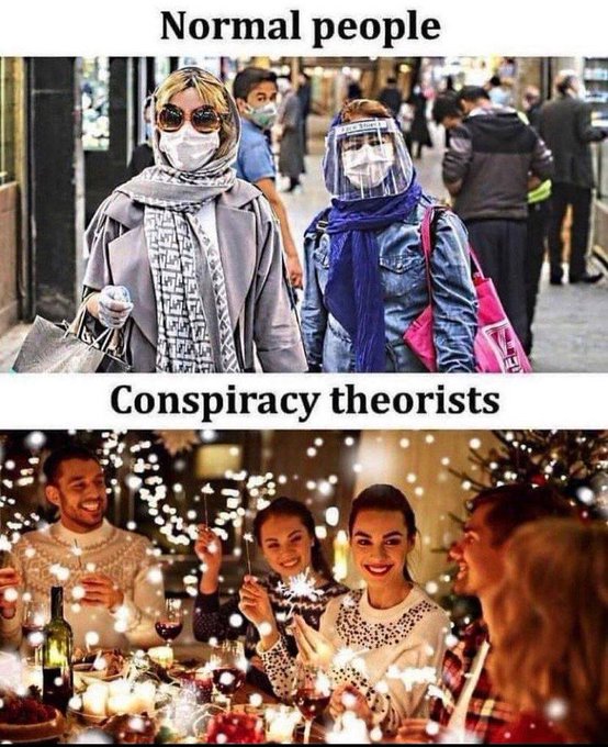 Don’t laugh at them, they’ll get dangerous when they realise they have nothing to lose and you’ll make yourself a target. Just quietly make plans for a swift exit to a remote location when the cities start tearing themselves apart. And remember to pack some PPE. You‘ll actually need it when the place is littered with corpses and you’re on a raid for supplies.