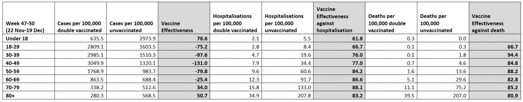 Vaccine Effectiveness Drops to Minus-75% in 18-29 Years-Olds as Omicron Slices Through Vaccine Protection and Booster Effect Starts to Wear Off