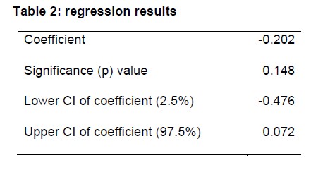 The statistical uncertainty around the result was such that the 95% confidence interval for the effect size included zero (note in the below the upper CI is positive).