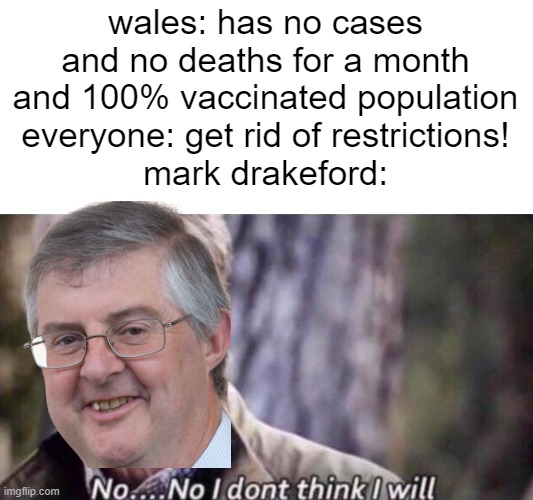 Mark Drakeford does what he likes even if it hurts the people he is supposed to serve (and he will pump out propaganda saying he is doing this to protect the people); this is the sign of a true dictator. He is clearly loving every minute of this and does not want it to end.