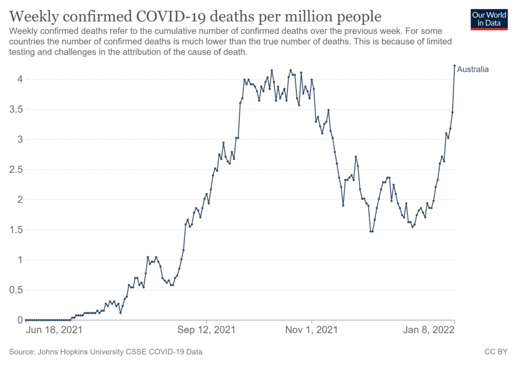 Australia is getting about 25 deaths a day. from infections a few weeks ago.