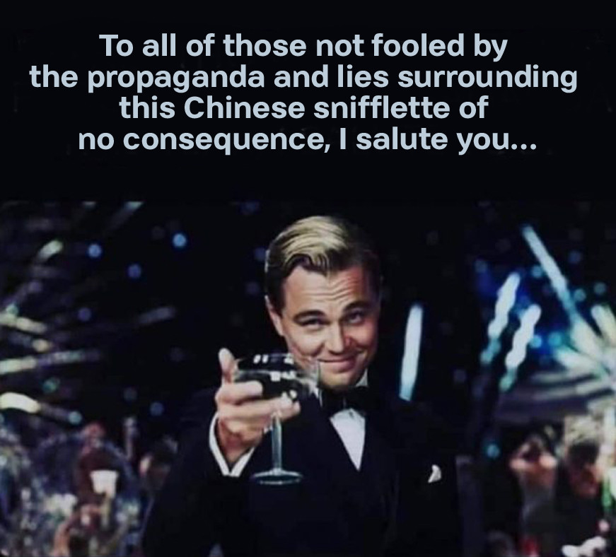 someone on here a few days ago noted a story of some woman have had C19 six times so far: I meant to write you have to say “bullshit” to these people and ask a follow up “you had pneumonia 6 times?” To which the reply is invariably “no i just tested +ve”: you got to shut that down and tell them “no pneumonia, no C19, sorry” (the English say ‘sorry’ when Americans say ‘sorry not sorry’ and crude Aussies, is there any other kind, say F*ck you).